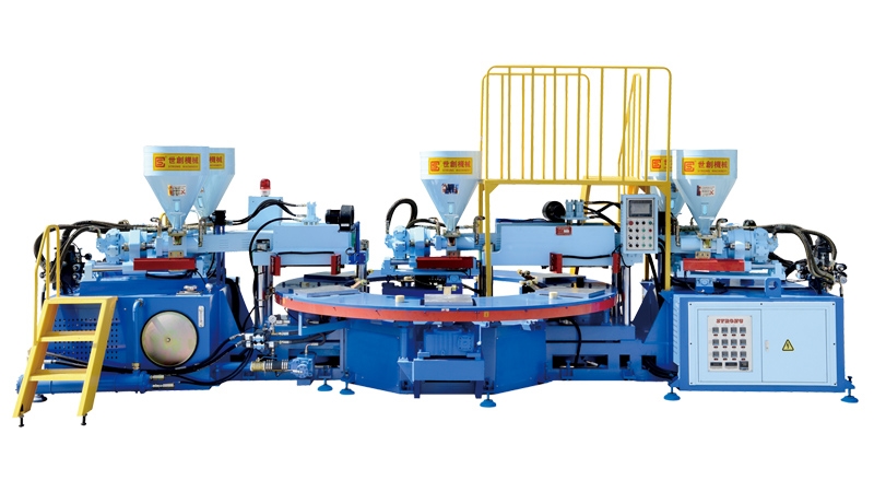 AUTOMATIC ROTARY TYPE FOUR COLOR STRAP / HIRIZONTAL INJECTION MOULDING MACHINE1.This machine is equiped with multi-function operation system ,can produce one/two/three colors pvc strap and sole of children shoes.