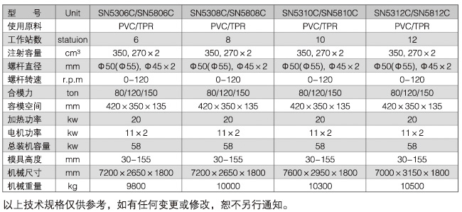 SN-5806C全自動回旋式塑膠類三色幫帶注射成型機(120T/140T四柱型)