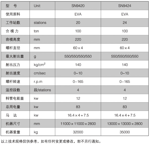 SN-9424全自動回轉(zhuǎn)式塑膠鞋類初坯注射成型機